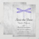 Invitation élégante et simple à sauver la date de mariage avec un papillon dragon pourpre sur un fond gris grunge. Ce design est un choix unique pour annoncer un mariage moderne. Facile à personnaliser avec vos détails de mariage. Cliquez sur "Personnaliser" pour trouver plus d'options de personnalisation.