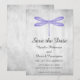 Élégante et simple invitation à sauver la date du mariage avec un papillon dragon pourpre sur un fond gris grunge. Ce design est un choix unique pour annoncer un mariage moderne. Facile à personnaliser avec vos détails de mariage. Cliquez sur "Personnaliser" pour trouver plus d'options de personnalisation.