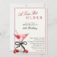 Elegant serif typography paired with graceful script lettering creates a balanced, heirloom-inspired aesthetic that feels timeless yet playful. Rich cherry red accents and a structured layout give the invitation a tailored, polished presentation reminiscent of old Hollywood cocktail gatherings and classic martini parties.