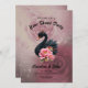 A touch of rose and swan's glow. This enchanting design depicts an elegant black swan, immediately eye-catching with its smooth, dark plumage and bright orange beak. A delicate floral arrangement perches atop its head, emphasizing its regal grace. Delicate pink blossoms, presumably peonies, are artfully grouped around the swan's body, lending the image a romantic and elegant touch. The background consists of a gentle gradient in shades of pink, immersing the scene in a dreamy, almost magical atmosphere. The interplay of the jet-black feathers, the vibrant flowers, and the soft gradient creates a harmonious overall image full of grace and love.