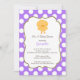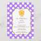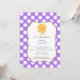 Une invitation au Baby shower de poussins de Pâques sucré avec un mignon bébé dressé sur un arrière - plan de pois pourpre et blanc. Disponible pour les filles, les garçons et les jumeaux dans notre boutique. Les produits correspondants sont également disponibles dans notre boutique à www.celebrateitinvites.com. ©Zenware