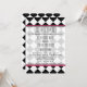 Une invitation à la remise de diplômes avec un arrière - plan en Jacquard noir et blanc à l'avant et à l'arrière. Texte noir et garniture rose. A l'opposé, le texte "Class of 2011" est placé en cercle rose avec l'illustration du casquette de graduation noir.