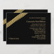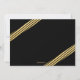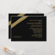 Une invitation simple mais sophistiquée, avec une touche d'or et de rayures noires, accrochée au coin contre un arrière - plan noir.La carte est facile à customiser avec votre libellé, police, couleur de police et choix de six types de papier.