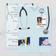 Une invitation personnalisée à obtenir un diplôme d'infirmière montrant du matériel médical dans les poches d'un professionnel des soins infirmiers. Les poches d'une infirmière sont toujours pleines ! Ajoutez une photo à l'avant de la balise ID pour un look plus customisé. Amusant et créatif ! Faites une invitation spéciale et personnalisée à la cérémonie de remise des diplômes pour le diplômé méritant.Demandes spécifiques de la profession médicale, veuillez contacter la ménagerie du Chevêche de nuit. Art original de la ménagerie de Night Owl, 2014.
