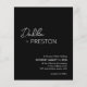 Budget noir moderne tout en un faire-part de mariage avec un design simple et minimal avec le nom de la mariée dans un script élégant et le nom du marié dans une police sans serif contemporaine. Vous trouverez ci-dessous, dans le coin inférieur droit, les détails de votre événement dans un agencement minimaliste. Le dos contient vos détails supplémentaires et le code QR, vous pouvez donc sauter la carte de boîtier et la carte RSVP.