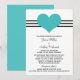 Simple et charmant Faire-part de mariage Mod Heart avec une triple bande de rayures et un coeur chéri en turquoise. Cette invitation douce mais minimaliste est parfaite pour un mariage moderne et élégant. Facile à customiser, il suffit d'ajouter les détails de votre mariage. Cliquez sur "Customiser" pour trouver d'autres options de personnalisation.