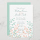Annoncez votre mariage à vos amis et votre famille avec cette invitation personnalisée de mariage. Ce faire-part mariage présente un motif de silhouette fleurie vert corail et menthe sur un arrière - plan blanc avec une couleur verte menthe ou fruit de mer sur le dos. Vous pouvez facilement customiser le texte sur la page de commande de produit.