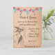 Invitation primitive mais élégante à un mariage conçue avec un arrière - plan en papier kraft vintage agrémenté d'une bannière fleurie.