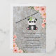 Une charmante invitation à une baby shower avec un adorable panda assis au centre. Le fond a une texture grise douce avec des décorations florales roses élégantes le long des bords. L'invitation est pour une baby shower en l'honneur de Nasrin et bébé Samina, avec des détails sur l'événement tels que la date, l'heure et le lieu. Le contact RSVP est également inclus. Un design doux et cosy parfait pour une célébration de baby shower mémorable.