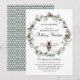 Une invitation unique pour une baby shower sur le thème de la maman abeille, avec des abeilles et une couronne florale de eucalyptus et de coton botanique. Motif en nid d'abeille au verso de l'invitation.