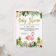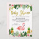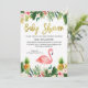 Vous cherchez une invitation pour une baby shower sur le thème des flamants roses tropicaux avec une touche de brillant ? Ce design présente un grand titre en calligraphie au pinceau en faux or et diverses compositions florales tropicales principalement en rose, jaune et vert en haut et en bas de l'invitation. J'ai également ajouté un motif à pois discret en arrière-plan. Le titre en calligraphie faux or ne peut pas être modifié, mais tout autre texte est modifiable. Cette invitation pour une baby shower sur le thème des flamants roses floraux tropicaux est facile et prête à être personnalisée.