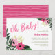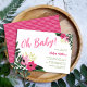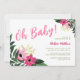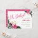 Conception moderne et tendance d'invitation à une baby shower avec une bordure florale tropicale audacieuse et une police de caractère calligraphique élégante. Personnalisez le design avec les détails de votre fête de baby shower et un espace vierge au dos pour ajouter des photos ou du texte supplémentaire. Utilisez les outils de conception pour personnaliser toutes les polices de caractères et les couleurs pour créer un design unique.