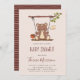 Créez votre propre Invitation à une Baby Shower Ourson Fantaisiste avec ces modèles faciles à utiliser de Stonking Stuff, mettant en vedette une illustration d'un ourson mignon assis sur une balançoire suspendue à une branche d'arbre avec un oiseau à côté.