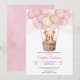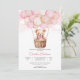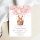Célébrez votre jour spécial avec cette adorable invitation de baby shower en forme d'ours en peluche avec un panier en osier soulevé par des ballons roses pastel et crème sur un fond nuageux de rêve. Parfaite pour honorer les futures mamans, ce design fantaisiste ajoute du charme et de l'élégance à votre célébration. Personnalisez avec les détails de l'événement pour créer un souvenir que vos invités garderont précieusement. Idéale pour les baby showers pour filles, cette douce invitation allie style ludique et attrait intemporel.