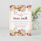 Faites sonner la saison des douches automnales avec cette invitation de douche élégante et rustique aux fleurs sauvages d'Automne ! Un bouquet de fleurs rouges, jaunes, violettes et pêche entoure le texte ainsi qu'un cadre rectangulaire de couleur or rose pour apporter une touche de vintage à cette invitation. Le texte présente une combinaison de polices traditionnelles et cursives pour un look unique et moderne ainsi que classique et intemporel ! Cette invitation donne juste ce qu'il faut de beauté naturelle et aérée que l'on trouve au Printemps et en Été et la combine avec une belle collection de couleurs chaudes d'Automne pour une invitation parfaite pour n'importe quelle douche de mariée, douche de mariage ou douche de bébé !