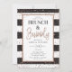 Brunch & Bubbly Parties scintillant Champagne Bridal Shower Invitation avec arrière - plan rayé noir et blanc