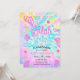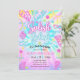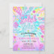 Faites sensation avec cette invitation colorée pour une fête au bord de la piscine "Splish Splash" ! Avec son fond vibrant tie-dye orné de feuilles de palmiers tropicales et de formes néon amusantes comme des tongs, des flamants roses et du soleil, c'est l'invitation parfaite pour enthousiasmer vos invités pour une fête d'anniversaire au bord de la piscine !