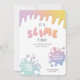 Invitation à une fête au slime arc-en-ciel collant. Invitation à une fête amusante et moderne. Partie d'une collection assortie.