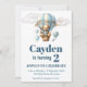 Invitation à une fête d'anniversaire avec un ours en peluche s'envolant dans une montgolfière