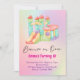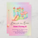 Invitation à une fête avec une maison gonflable arc-en-ciel