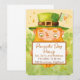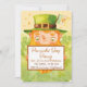 Une invitation à une fête de la Saint-Patrick charmante et joyeuse avec un adorable lutin tenant un panneau festif, entouré de douces trèfles vertes et de textures aquarelles chaudes. Parfait pour les fêtes sur le thème irlandais, les célébrations en famille, les événements de pub ou les rassemblements de la Saint-Patrick. Ce design charmant ajoute une touche amusante et chanceuse à toute célébration.
