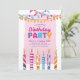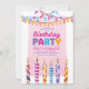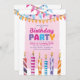 Une délicieuse invitation aquarelle avec six bougies colorées allumées et une bordure supérieure de drapeau de fête.