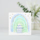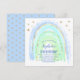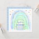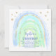 Invitation à une fête d'anniversaire arc-en-ciel pour fille, avec un arc-en-ciel mignon aux nuances de bleu, de sarcelle, de vert et d'étoiles dorées. L'invitation comprend également un modèle d'invitation à une fête d'anniversaire facile à personnaliser ; les styles, tailles et couleurs de police peuvent être modifiés en cliquant sur le lien 'personnaliser davantage' après la personnalisation.
