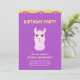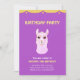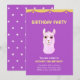 Carte d'invitation à une fête d'anniversaire de 13 ans. La carte d'anniversaire comporte un mignon lama rose sur fond ultra violet. Il y a un motif d'étoiles au dos. Le texte est prêt à être personnalisé. Le mot lama signifie plusieurs choses.