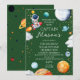 Lancez une aventure d'anniversaire passionnante avec cette invitation d'anniversaire de Capitaine Espace représentant un astronaute joueur chevauchant une fusée, des planètes colorées, des étoiles et un thème d'espace extra-atmosphérique amusant. Cette invitation invite les invités à explorer les planètes et à célébrer une mission d'anniversaire cosmique.