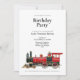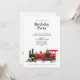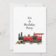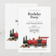 Préparez-vous à célébrer avec cette invitation d'anniversaire simple et claire. Le devant présente une grande illustration détaillée d'une locomotive à vapeur rouge et noire classique reposant au bas de la carte. Au-dessus du train, les mots "Fête d'anniversaire" sont écrits en texte noir soigné centré sur un fond blanc uni. Il a une mise en page très traditionnelle qui permet à vos invités de lire rapidement toutes les informations importantes en un coup d'œil. Le design général est épuré, dirigeant toute l'attention directement sur l'illustration du train et les détails de votre événement.