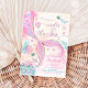 Faites sensation avec cette invitation d'anniversaire enchantée de sirène Sous l'océan, présentant une queue de sirène scintillante en rose, violet et bleu entourée de coquillages, de corail et d'étoiles de mer. Le fond aquarelle doux ajoute une touche fantaisiste, parfait pour les célébrations sur le thème de l'océan. Personnalisez avec le nom de votre enfant, son âge et les détails de la fête pour créer un souvenir magique. Idéale pour les anniversaires de filles, cette invitation de sirène donne le ton pour une aventure sous-marine amusante et inoubliable.