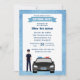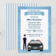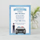 Invitation d'anniversaire pour un policier masculin. Le design comporte une voiture de police et un policier masculin avec les mots vous êtes invité à une fête d'anniversaire. Facile à personnaliser avec les détails de votre fête. Ajoutez le nom du département sur les plaques d'immatriculation de la voiture.