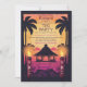 Cette invitation à une fête Tiki vous transporte dans une oasis balnéaire, baignée dans la douce lueur d'un coucher de soleil rouge et violet. Une mignonne hutte tiki se niche parmi de grands palmiers bruissants. La plage de sable immaculé, qui s'étend à l'infini, promet une célébration animée. Les couleurs qui se fondent dans le ciel du crépuscule évoquent un sentiment de tranquillité tropicale, préparant le terrain pour une fête Tiki vibrante.
