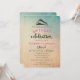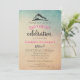 Une invitation à une fête d'anniversaire avec un style minimaliste et extérieur. Conçue avec une illustration d'une montagne avec des rayons de soleil émanant de derrière. Le fond est d'une couleur parchemin avec une pointe de bleu. Thème agréable pour les amateurs de plein air comme les randonneurs, les alpinistes, les amoureux de la nature, ceux qui aiment camper, etc.