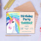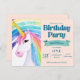 Carte postale d'invitation pour la fête du 1er anniversaire de licorne des enfants arc-en-ciel. Célébrez l'étape magique de votre petit avec cette adorable carte postale d'invitation pour la fête du 1er anniversaire de licorne des enfants arc-en-ciel. Conçue pour ravir les enfants et les parents, cette invitation présente un fond pastel arc-en-ciel fantaisiste orné d'une charmante illustration de licorne, avec des étoiles scintillantes et des accents ludiques. Le design dégage une atmosphère rêveuse et joyeuse, créant le ton parfait pour une célébration inoubliable du premier anniversaire.
