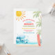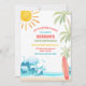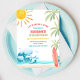 Faites des vagues avec cette invitation d'anniversaire sur le thème de la plage tropicale, parfaite pour les enfants qui célèbrent leur jour spécial dans un style ensoleillé. Avec des palmiers vibrants, des vagues océaniques, une planche de surf et un soleil joyeux, ce design donne le ton pour une célébration amusante au bord de la mer. Idéal pour les anniversaires d'été, les fêtes autour de la piscine ou les événements sur le thème du surf, il est personnalisable avec les détails de votre fête pour créer un souvenir unique. Apportez les vibrations de la plage à votre célébration et impressionnez vos invités avec cette invitation colorée et festive.