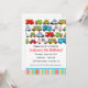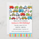 Invitation à une fête d'anniversaire sur le thème du transport avec beaucoup de voitures et de véhicules différents