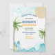 Faites des vagues avec cette invitation d'anniversaire vibrante de plage et de surf, parfaite pour les enfants qui aiment l'océan et l'aventure. Avec des palmiers ludiques, des planches de surf, des vagues et un design tropical ensoleillé, cette invitation donne le ton à une célébration amusante au bord de la mer. Avec des polices grasses et des illustrations colorées, elle est idéale pour un 10e anniversaire ou toute fête sur le thème de l'été. Personnalisez-la avec les détails de votre événement pour créer un souvenir unique que vos invités adoreront.
