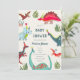 Une invitation de baby shower de dinosaure mignon avec des dinosaures peints à la main dans une jungle préhistorique de palmiers et de feuilles. Pour la meilleure baby shower pour un garçon ! Œuvre originale de Caroline Bonne Müller.