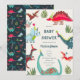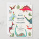 Une carte de baby-shower peinte à la main avec des dinosaures dans une jungle préhistorique. Œuvre originale de Caroline Bonne Müller.