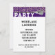 Cartes d'invitation créatives sur le thème de la crosse à personnaliser facilement pour un joueur de crosse, un entraîneur ou une soirée senior de l'équipe violette ou une célébration d'événement sportif.