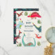 Invitation à une fête de douche pour bébé avec des dinosaures illustrés colorés portant des chapeaux de fête. Invitation parfaite pour une fête de douche pour bébé de genre neutre, invitation à thème préhistorique pour une fête de douche pour bébé, papeterie moderne et ludique pour une fête de douche pour bébé. Œuvre originale de Caroline Bonne Müller.
