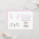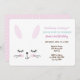 Invitation lapin dans un schéma de couleur rose et blanc, avec une illustration de lapin mignon et un fond à pois pour le verso. Parfait pour un premier anniversaire, une fête d'anniversaire pour tout-petits ou une fête de Pâques.
