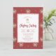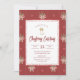 Invitez vos amis à célébrer la saison avec cette invitation à une soirée cocktail de Noël rustique avec des éléments botaniques, ornée de verdure aquarellée, de baies rouges et de rubans de Noël sur un fond rouge profond. Les détails peints à la main et la typographie élégante créent une atmosphère festive et raffinée pour votre rassemblement.