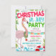 Invitation adorable et amusante à une fête de Noël au bord de la piscine avec des flamants roses en juillet !