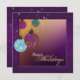 Célébrez les vacances avec cette magnifique invitation de vacances heureux. Il présente des ornements tridimensionnels brillants de violet, turquoise et d'or avec des dessus brun et or ornés et des tourbillons éclatants et un effet disco-ball. La bordure tourbillonnante violette texturée donne de l'élégance au design. Il dispose d'un arrière - plan dégradé d'or, de blanc et de violet avec un effet de coucher de soleil, ce qui en fait une invitation parfaite pour un dîner ou une soirée tardive. Ce design d'invitation offre aux invitations de fêtes à l'allure professionnelle à un coût abordable.