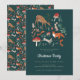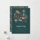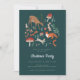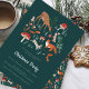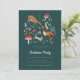 Invitation verte rustique mignonne avec une illustration traditionnelle classique de Noël verte et rose nostalgique avec des animaux de la forêt dans la nature sous la neige. Parfaite pour inviter vos proches à une fête de Noël. Œuvre originale de Caroline Bonne Müller