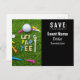 Invitation à une fête de Par tee de golf avec une balle de golf et des tees colorés sur de l'herbe verte.