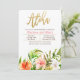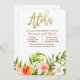 Invitation à une fête de pendaison de crémaillère Aloha Tropical. Crédit image florale : etsy.com/shop/StudioEquinoxArt