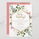 Invitations pour une fête de pendaison de crémaillère d'hiver ! Ces invitations seront parfaites pour une fête de pendaison de crémaillère sur le thème de l'hiver ou de Noël ! Ces invitations présentent une verdure peinte à l'aquarelle avec des accents rouges et dorés.